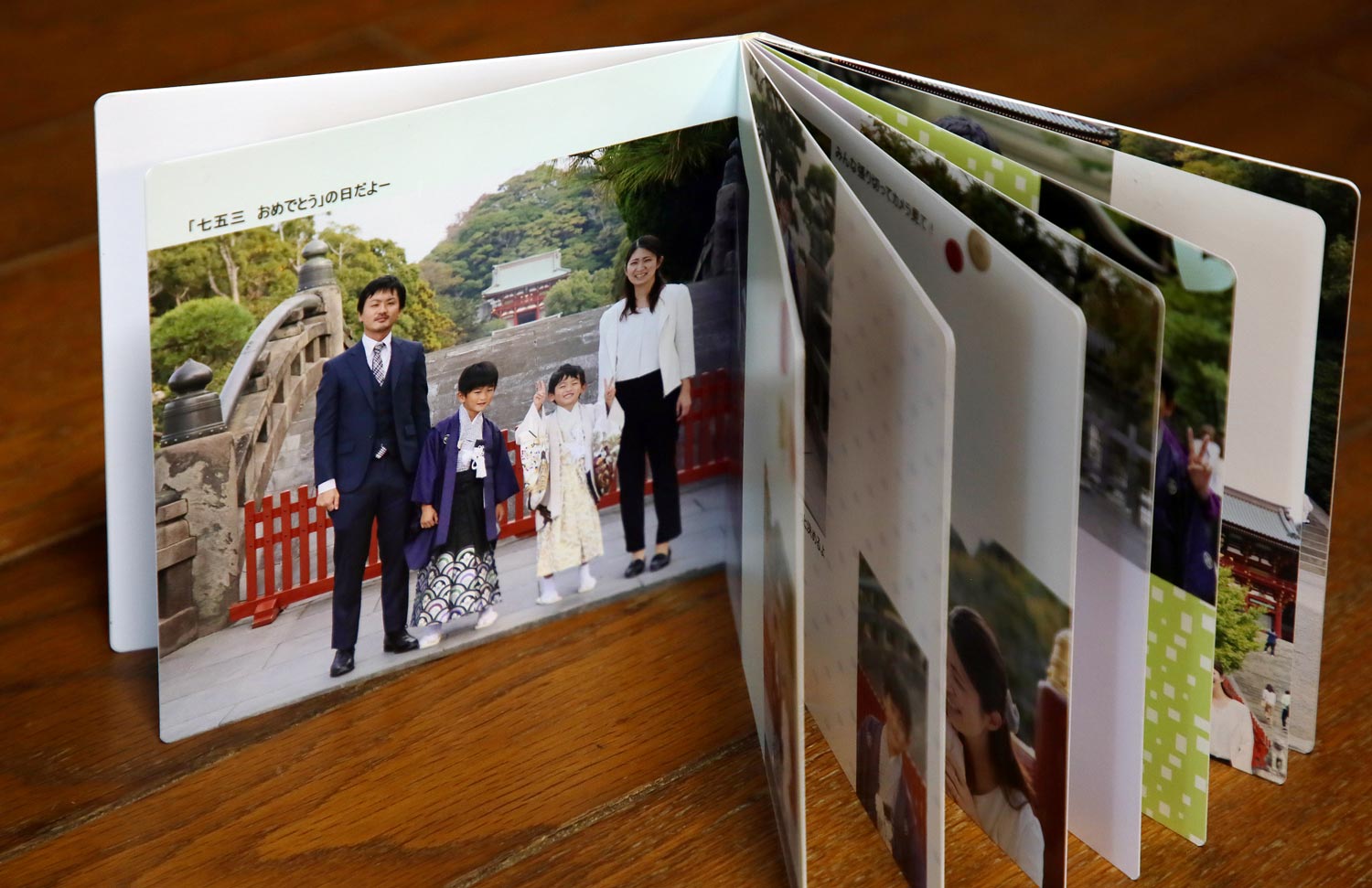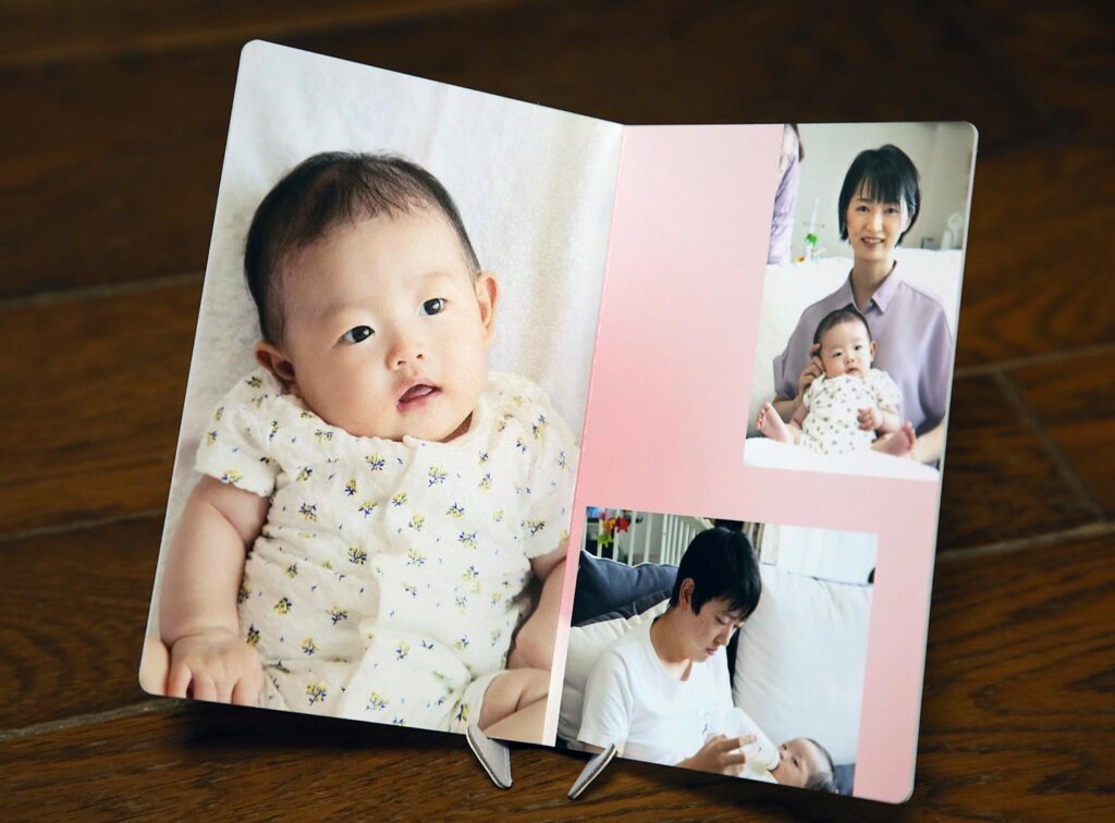 オプションでフォトブック制作を承ります。写真のセレクト、デザイン全ておまかせください。お名前や簡単な文章も入った絵本仕立てです。